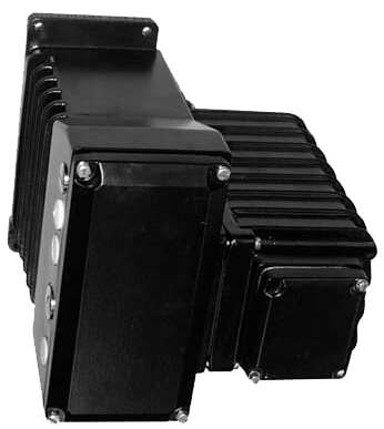 - On vertical mounting plate, lateral cable gland, left